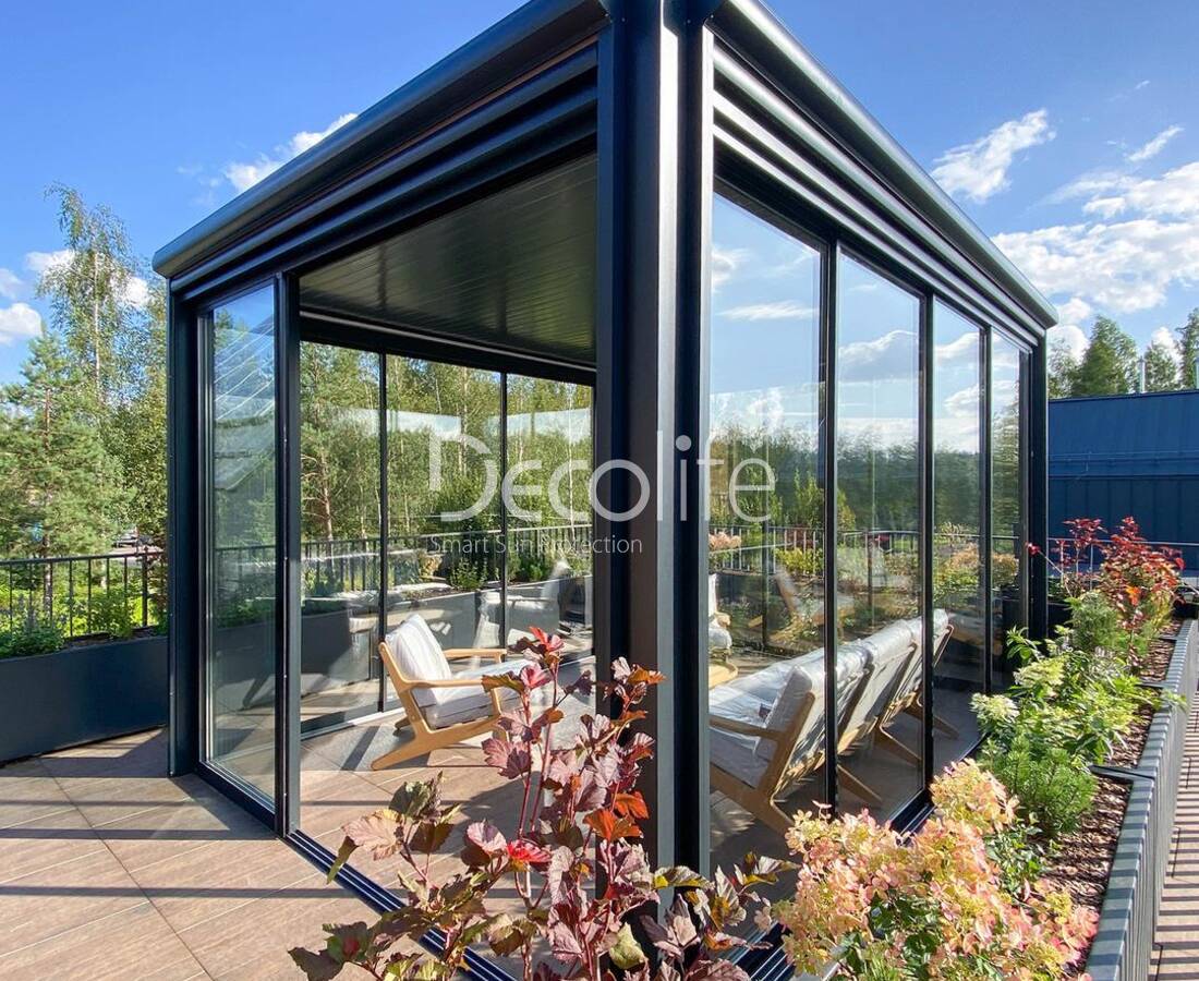 Пергола Decolife Bioclimatic B700-25С + Раздвижное остекление S200 - г. Сочи