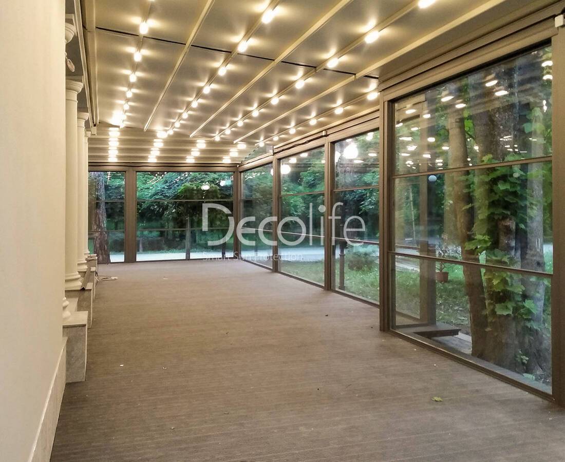 Пергола Decolife В600 PIR + Раздвижное безрамное остекление S200 - Симеиз