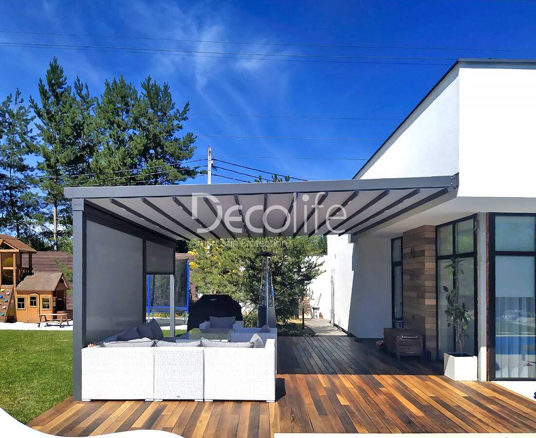 Пергола тентовая Decolife Project Light + Вертикальная система Zip 100 - реализовано партнером "ООО Люкс Террас" - г. Красногорск