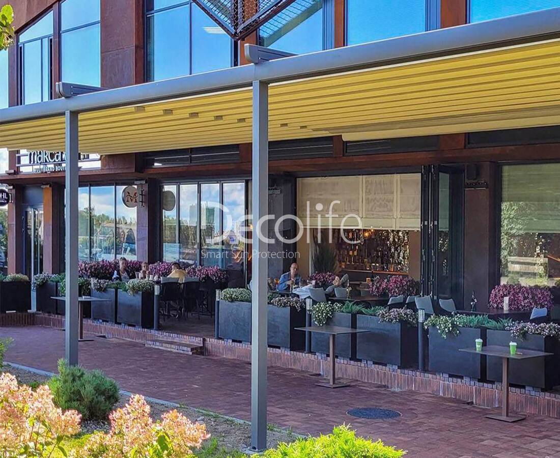 Пергола тентовая Decolife Basic&Pro New, реализовано партнером ООО "Европейские Солнцезащитные Системы" - г. Калининград, р-н Lastadie