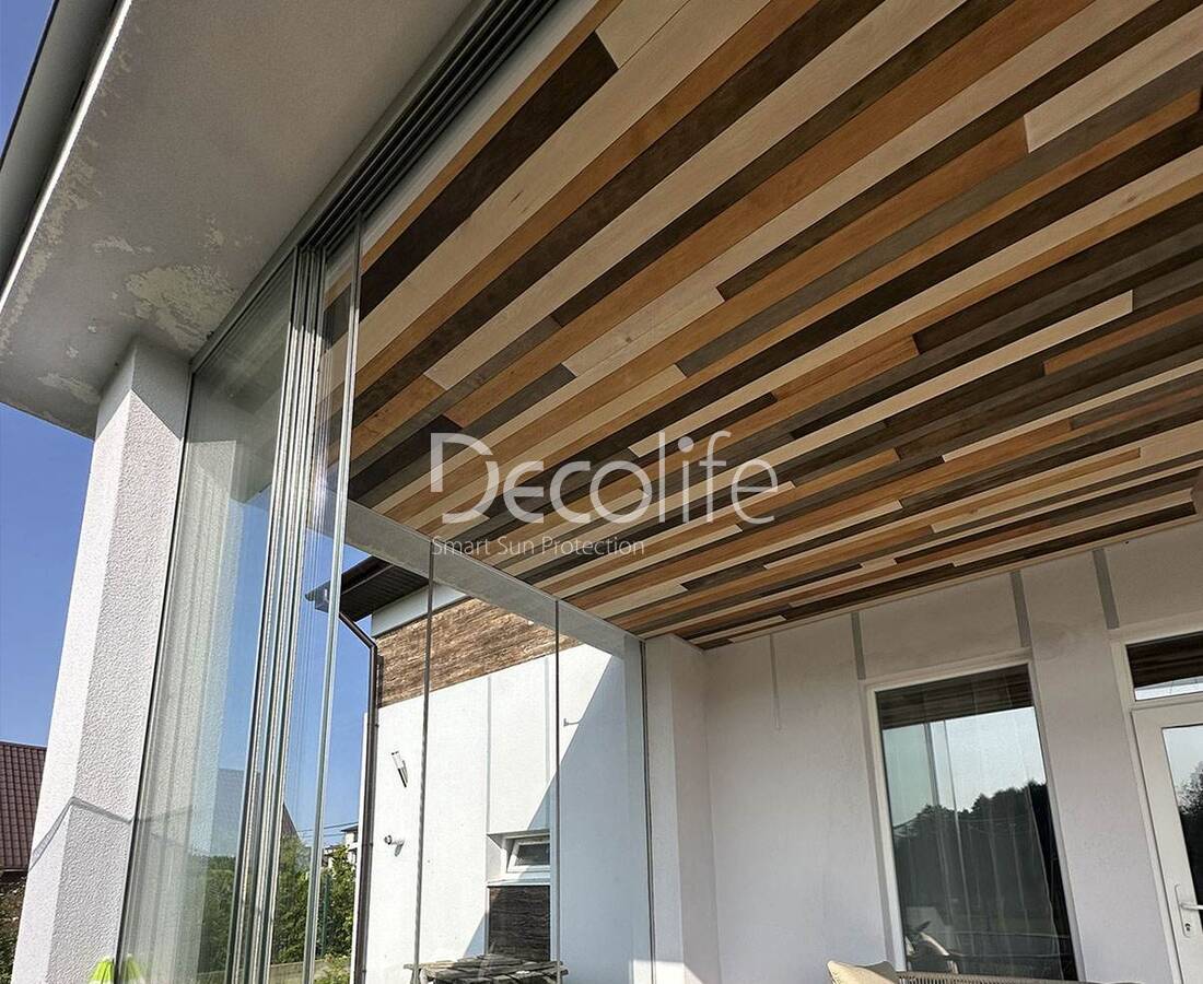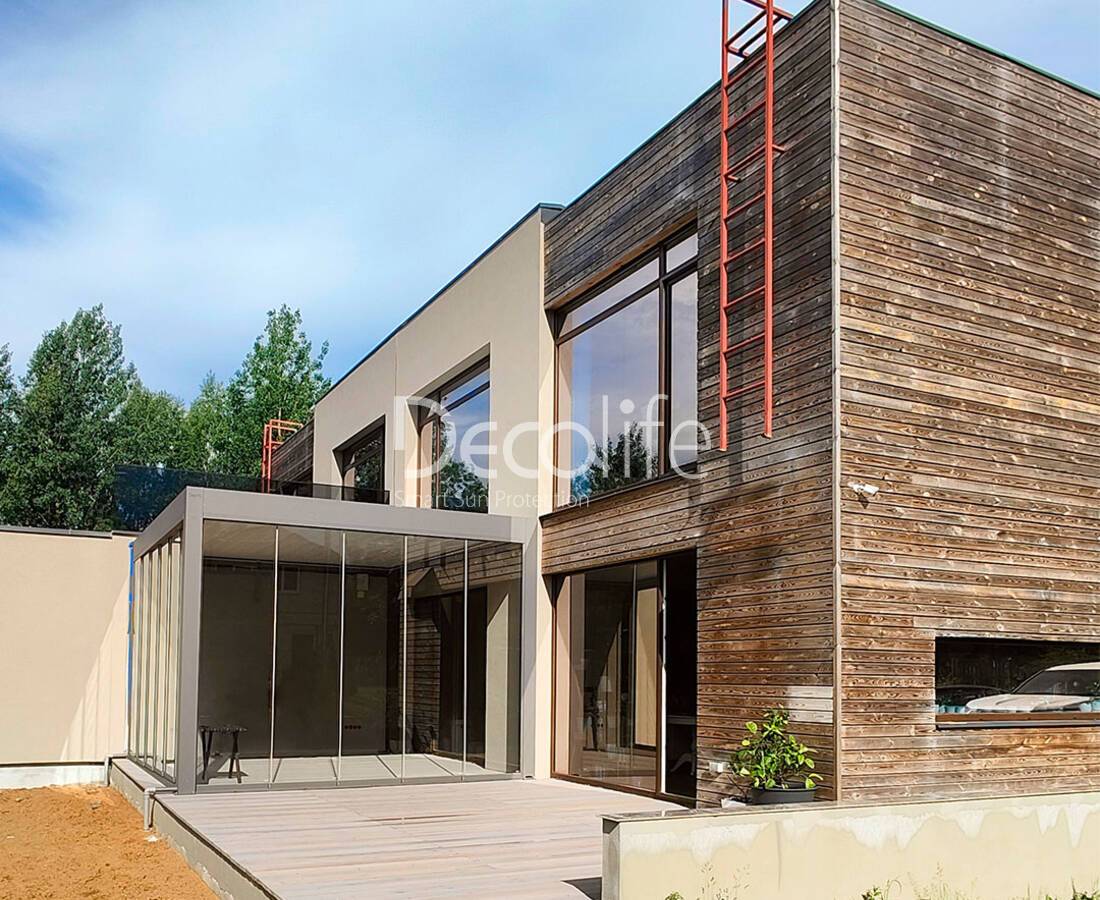 Пергола Bioclimatic Decolife B500-25П + Раздвижное остекление S100 + Вертикальная система Zip 130 - Московская обл.